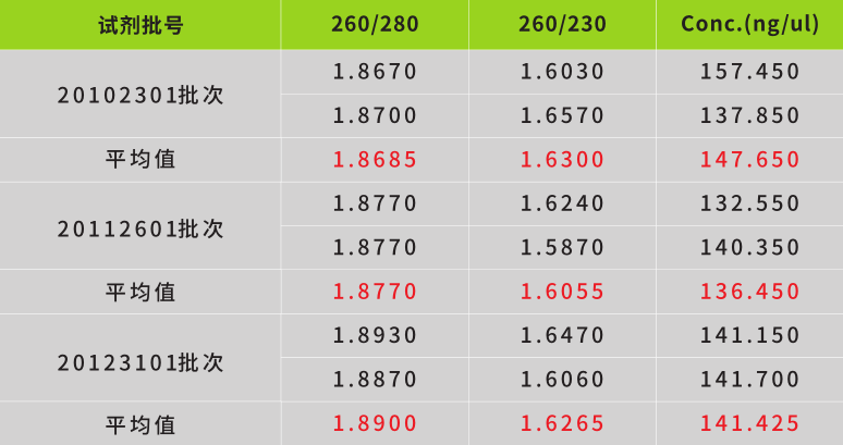 不同批次試劑提取同一血樣的實驗結(jié)果